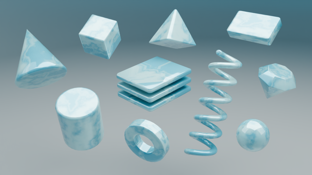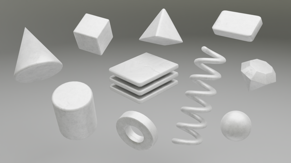 High quality renders of different geometric objects with transparent backgrounds. 10 Objects | 6 Different materials